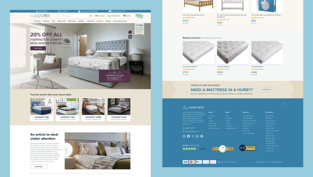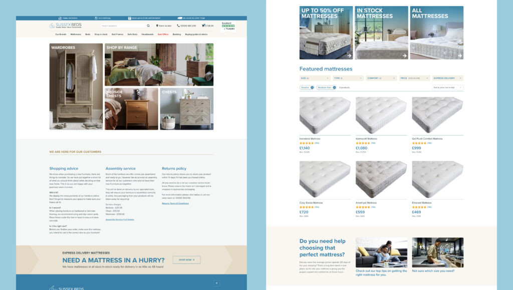 Wirebox has worked with Sussex Beds for a number of years supporting their previous platform, which was a great success, when developed over 5 years ago, however to bring the site more up to date, Sussex Beds needed to move to Oracle Netsuite. This meant the site had to be changed to integrate into the new ERP.